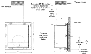 | Conçu par l'équipe de A'QUIA, ce limiteur de débit effet vortex s'installe sur la partie verticale du bassin tampon ou dans un regard, en continuité avec la conduite avale, au point le plus bas, les génératrices devant être confondues. Il permet l'évacuation de l'effluent vers le réseau d'égout ou vers l'exutoire à un débit spécifique. Le débit de fuite est figé pour la hauteur d'eau maximale transmise. |